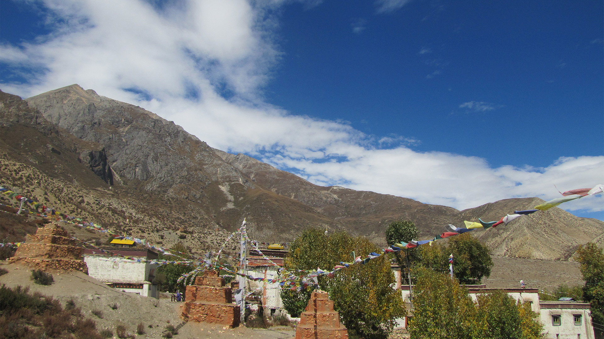 Take a short flight to Jomsom and start your trek to Kagbeni, a picturesque village with Tibetan influences.